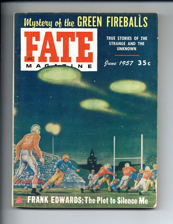 Volume 10 - Number 6, June 1957. Pulp magazine devoted to exploring the paranormal. This issue we focus on the Mystery of the Green Fireballs, and Frank Edwards own Saucer story continues with "The Plot to Silence Me"! Softcover, 5 1/2-in. x 7 1/2-in., 130 page, Text (with B&W Illustrations and Photos). Cover price $0.35.