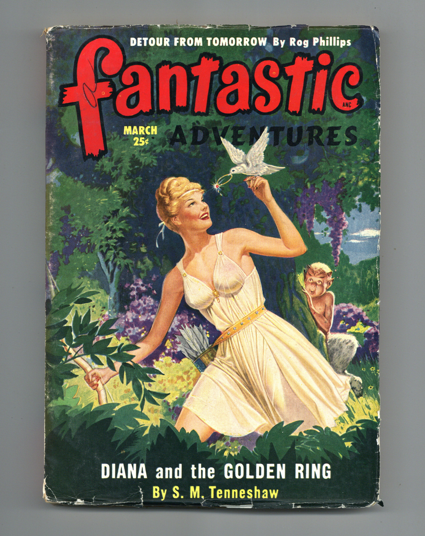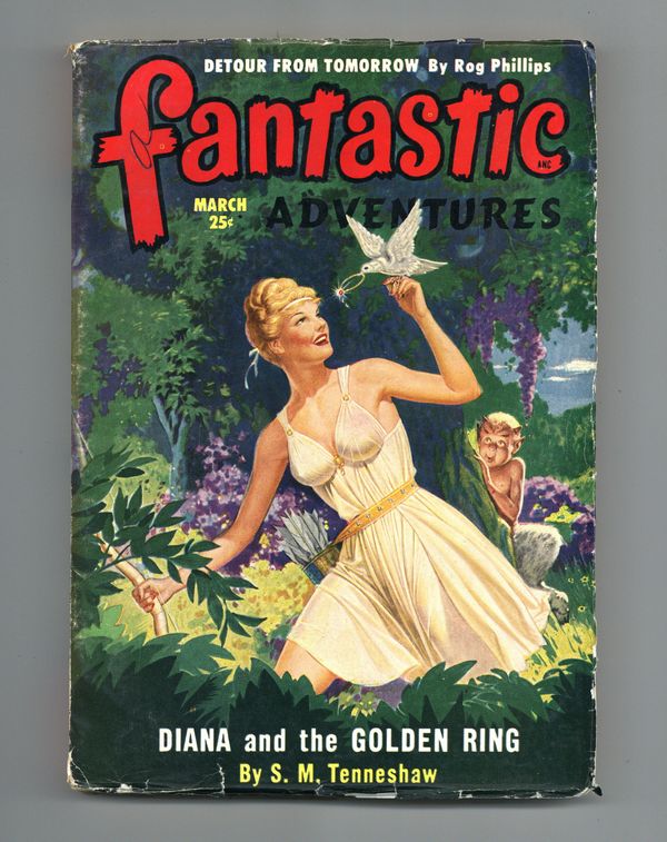 Volume 12, Issue 3 - March, 1950. Cover by Robert Gibson Jones. Science Fiction and Adventures stories. This issue features "IDetour From Tomorrow" by Rog Phillips, and "Diana and the Golden Ring" by S.M. Tenneshaw. Softcover Pulp, 7-in x 10-in, 164 Pages, B&W. Cover price $0.25.