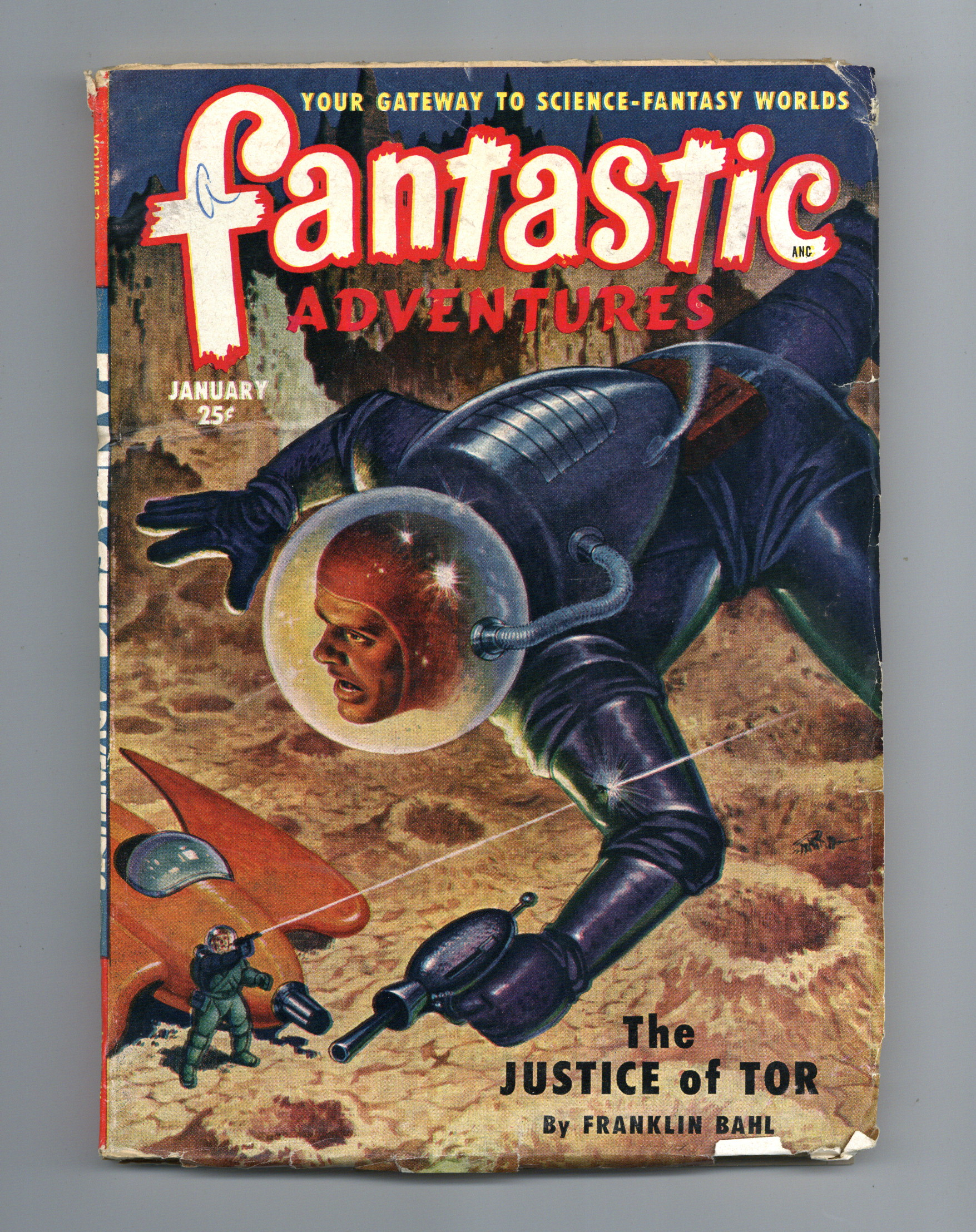 Volume 13, Issue 1 - January 1951. Cover by Robert Gibson Jones. Science Fiction and Adventures stories. This issue features "The Justice of Tor" by Franklin Bahl. Softcover Pulp, 7-in x 10-in, 134 Pages, B&W. Cover price $0.25.