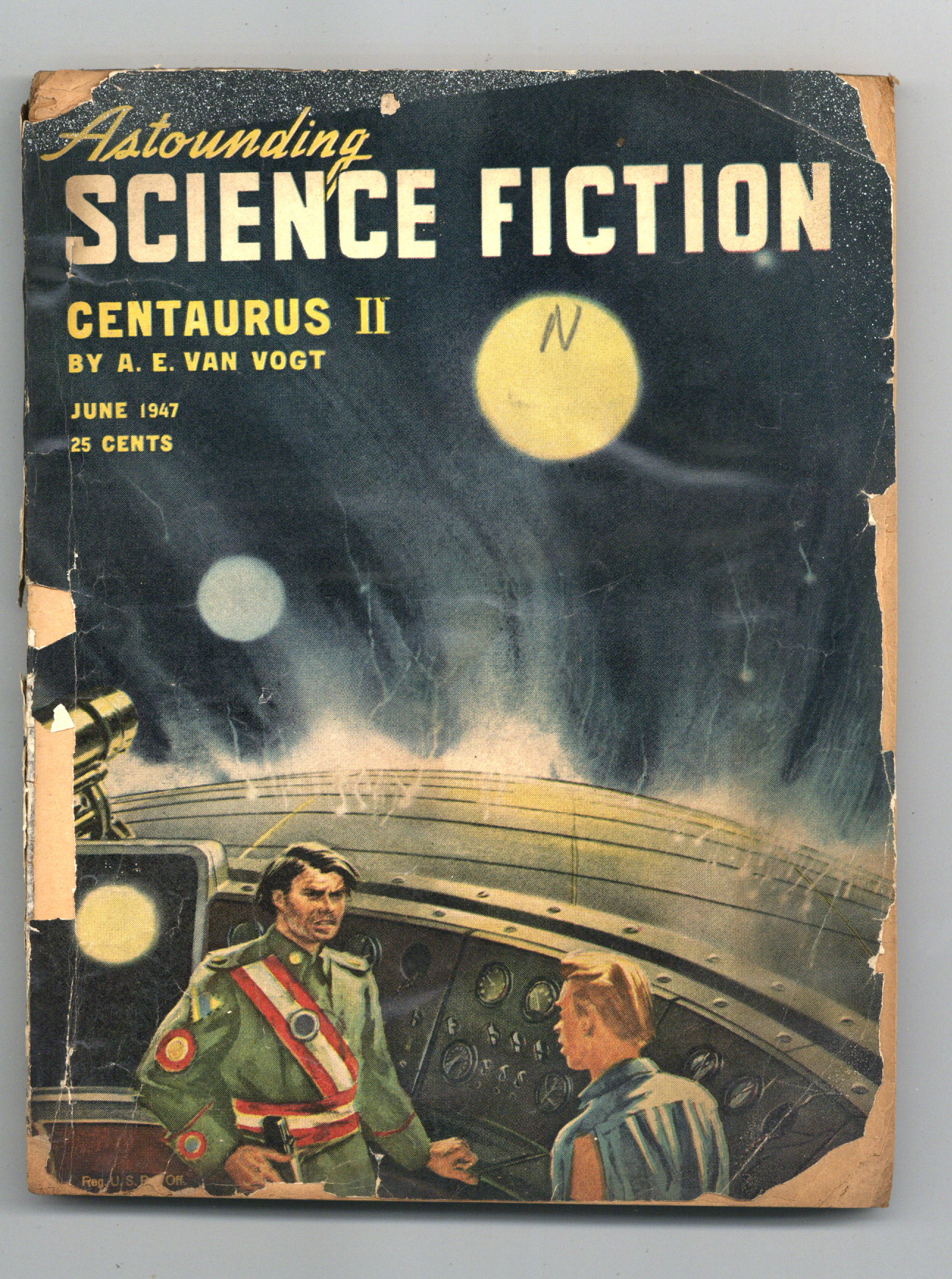 Published Jun 1947 by Street & Smith.$3.00Volume 39, Issue 4 - June 1947. Cover by Charles Schneeman. Science Fiction and adventure stories, this issue features "Centaurus II" by A.E. Van Vogt. 5.5-in. x 7.5-in., 162 pages, B&W. Cover price $0.25.