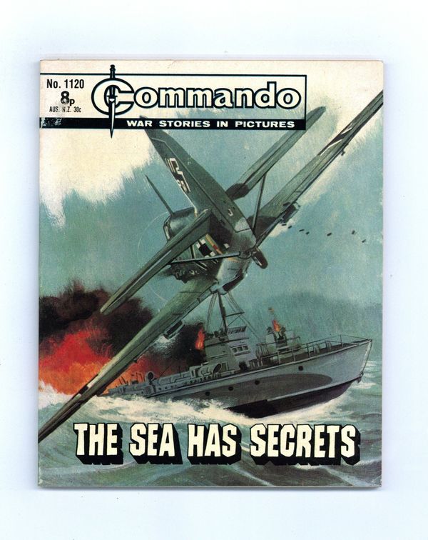 Published Apr 1977 by D. C. Thomson.$43.00Weekly British War comics digest. "The Sea has Secrets" Softcover, 5 1/2-in. x 6 1/2-in., 68 pages, B/W.
