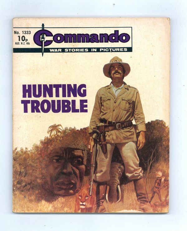 Weekly British War comics digest. "Hunting Trouble" Softcover, 5 1/2-in. x 6 1/2-in., 68 pages, B/W.