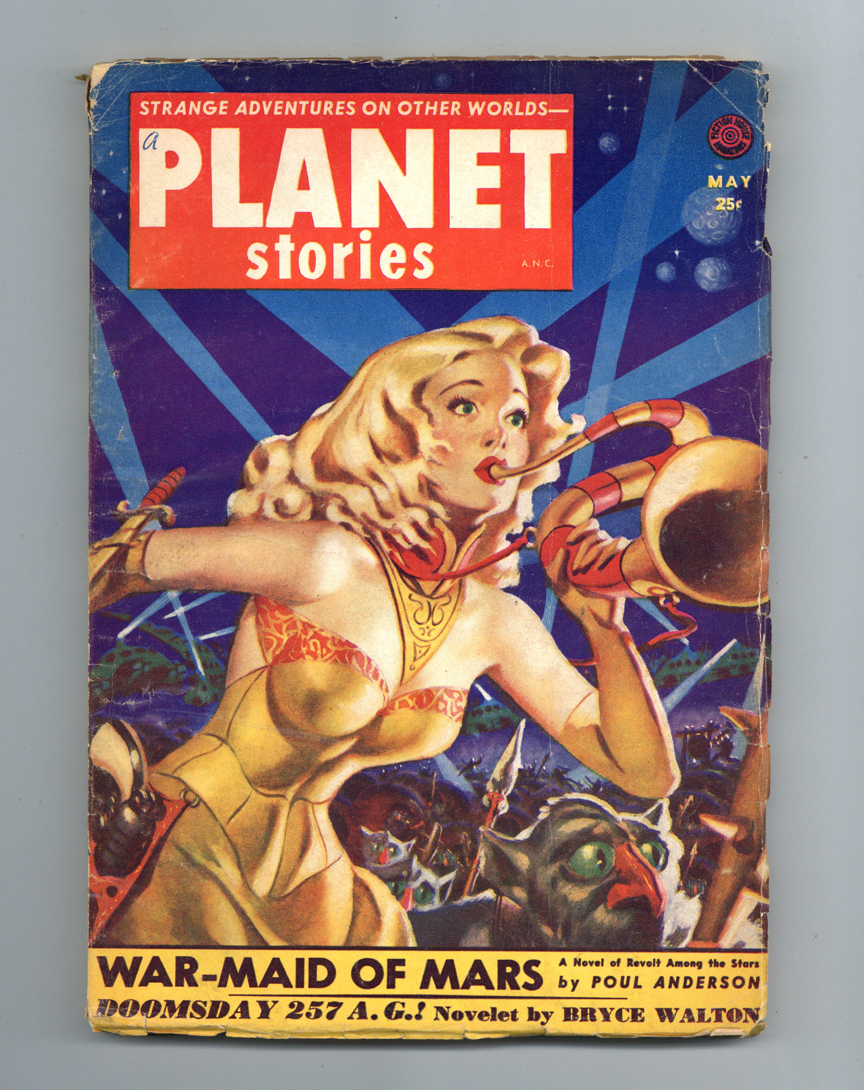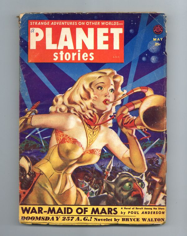 May 1952. Cover by Allen Anderson. "War-Maid of Mars" by Poul Anderson. Other stories by J. T. McIntosh, Bryce Walton, Robert Moore Williams, Peter Phillips, Lloyd Palmer, Bolling Branham, and John McGreevey. Illustrations by Herman Vestal, Kelly Freas. 7-in. x 9.75-in.; black and white; 116 pages. Cover price $0.25.