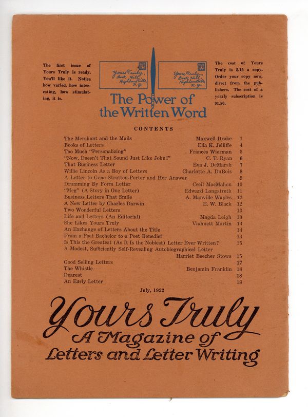 Published Aug 1922 by Shortstory Publishing.$40.00- Spine split 5%. Water damage: Slight. Staple rust: Slight.