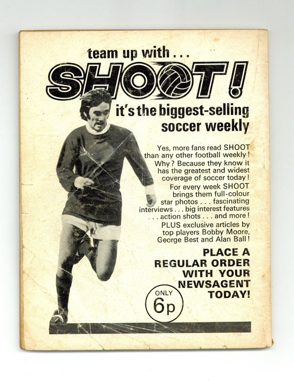 Published 1972 (est.) by IPC/Fleetway.$3.00- Front cover detached 10%. Water damage: Moderate. Staple rust: Slight.