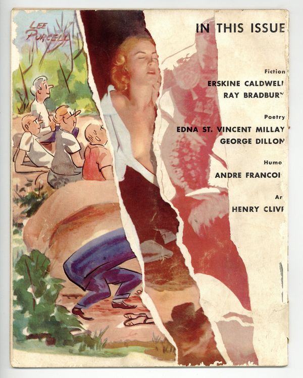 Published Oct 1955 by Dee Publishing.$8.00Volume 1, Issue 1 - October, 1955. Cover photo by Keith Bernard. Vintage men's interest magazine featuring articles, essays, poetry, adult humor comics, and tasteful nude pin-up pictorials. This issue includes the short story, "The Mice" by Ray Bradbury. 8.5" x 11", 60 pages, B&W/Color. -MATURE READERS- Cover price $0.50.