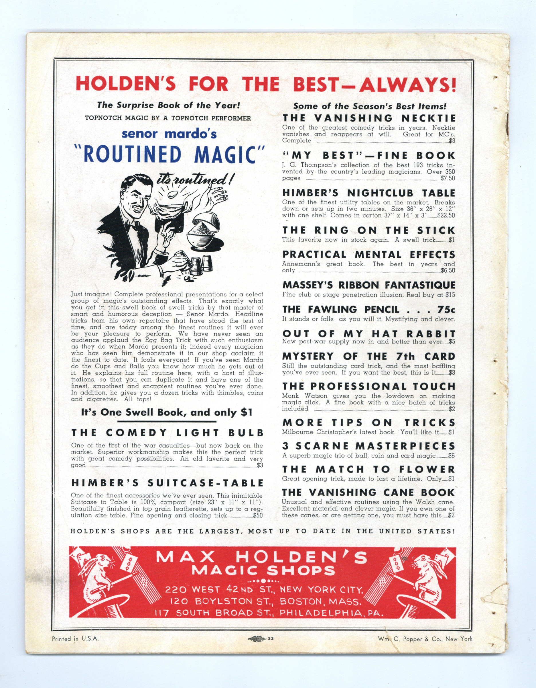 Volume 1, Issue 12 - January, 1946. Magic Periodical put out by Walter B. Gibson with help from Harry Houdini's brother, Hardeen that showcases the talent of magicians as well as teaching tricks to readers. 8.5" x 11", 48 pages, B&W. Cover price $0.50.