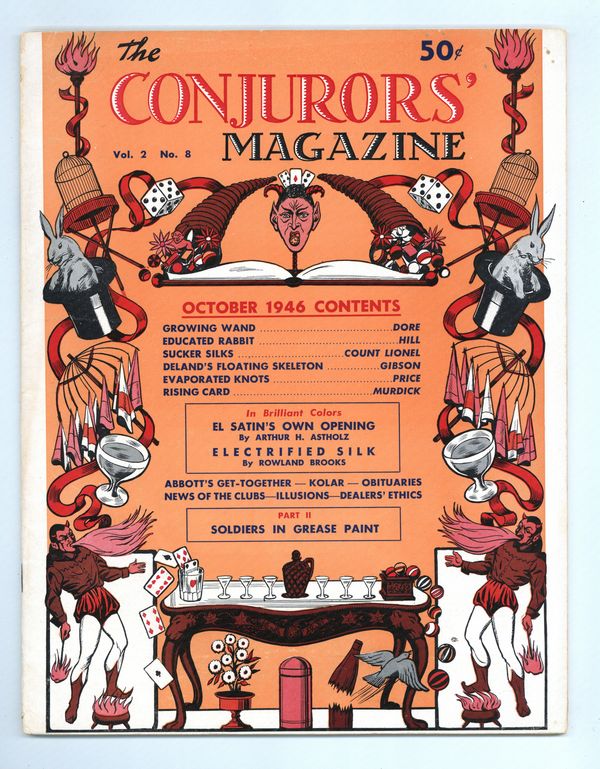 Published Oct 1946 by Conjurors' Press.$2.50Volume 2, Issue 8 - October, 1946. Magic Periodical put out by Walter B. Gibson with help from Harry Houdini's brother, Hardeen that showcases the talent of magicians as well as teaching tricks to readers. 8.5" x 11", 52 pages, B&W. Cover price $0.50.