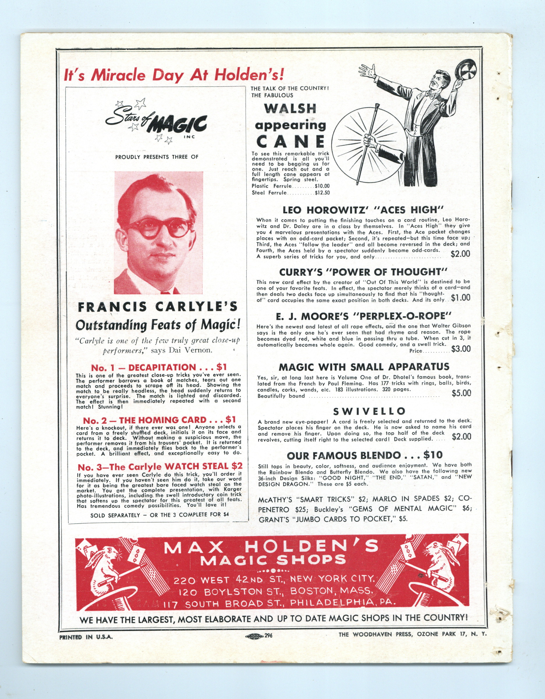 Published Nov 1947 by Conjurors' Press.$2.50- Centerfold detached. Staple rust.