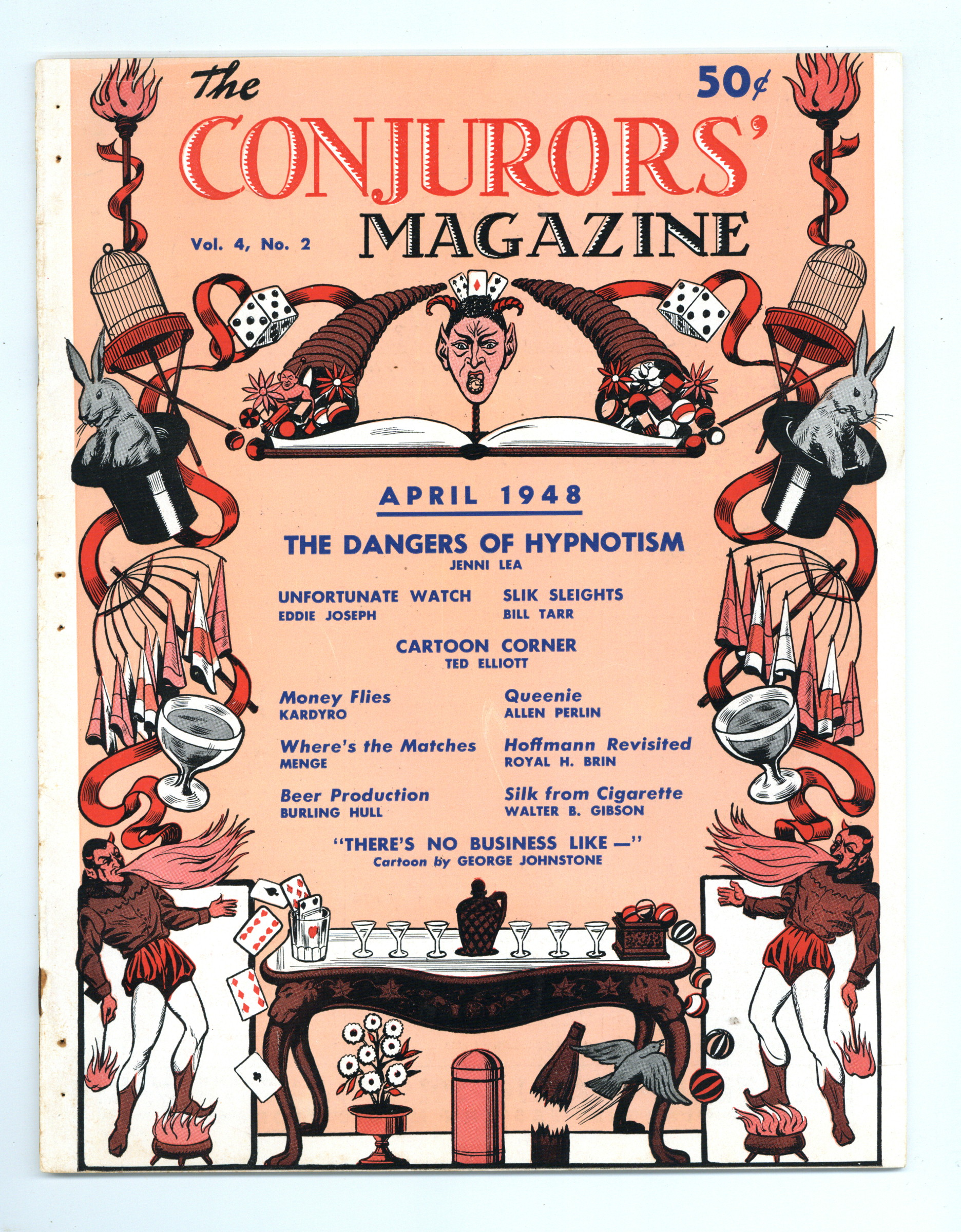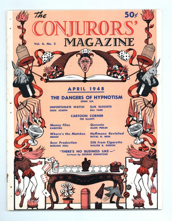 Published Apr 1948 by Conjurors' Press.$2.50Volume 4, Issue 2 - April, 1948. Magic Periodical put out by Walter B. Gibson with help from Harry Houdini's brother, Hardeen that showcases the talent of magicians as well as teaching tricks to readers. 8.5" x 11", 48 pages, B&W. Cover price $0.50.