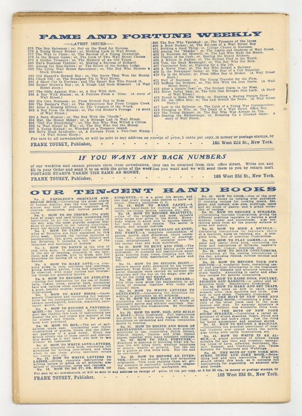 October 10, 1913. The Young Shipper; or, The Boy Who Was Always On Top. 11" x 8", 36 pages. Cover price $0.05.