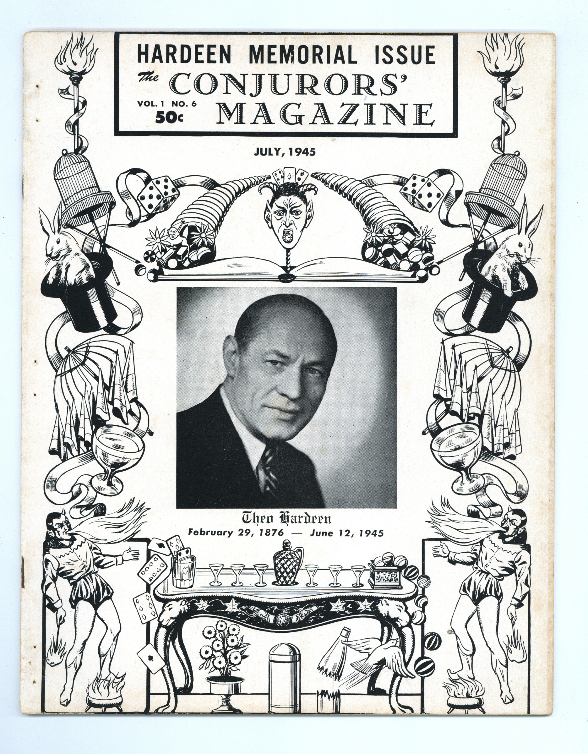 Vol. 1, No. 6 - July , 1945. Magazine for magicians. 8.5" x 11.75", 40 pages, B&W. Cover price $0.50.