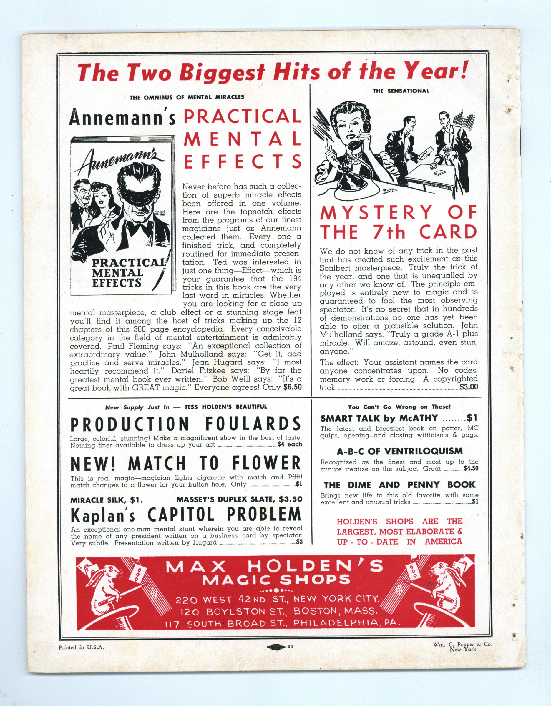Vol. 1, No. 7 - August , 1945. Magazine for magicians. 8.5" x 11.75", 40 pages, B&W. Cover price $0.50.