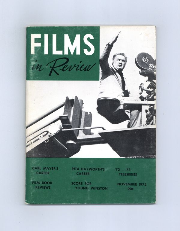 Published Nov 1972 by National Board of Review of Motion Pictures Inc..$7.80Film in Review is a publication of the National Board of Review of Motion Pictures, Inc, an independent, non-profit organization of public citizens founded in 1909 to represent the interests of the motion picture public. This National Board further assists the development of the motion picture as a source of entertainment, as education, and as art, by providing media for the expression of the public's opinion about films and their cultural and social effects. 5 1/2-in. x 7 1/2-in. Cover price $0.90.