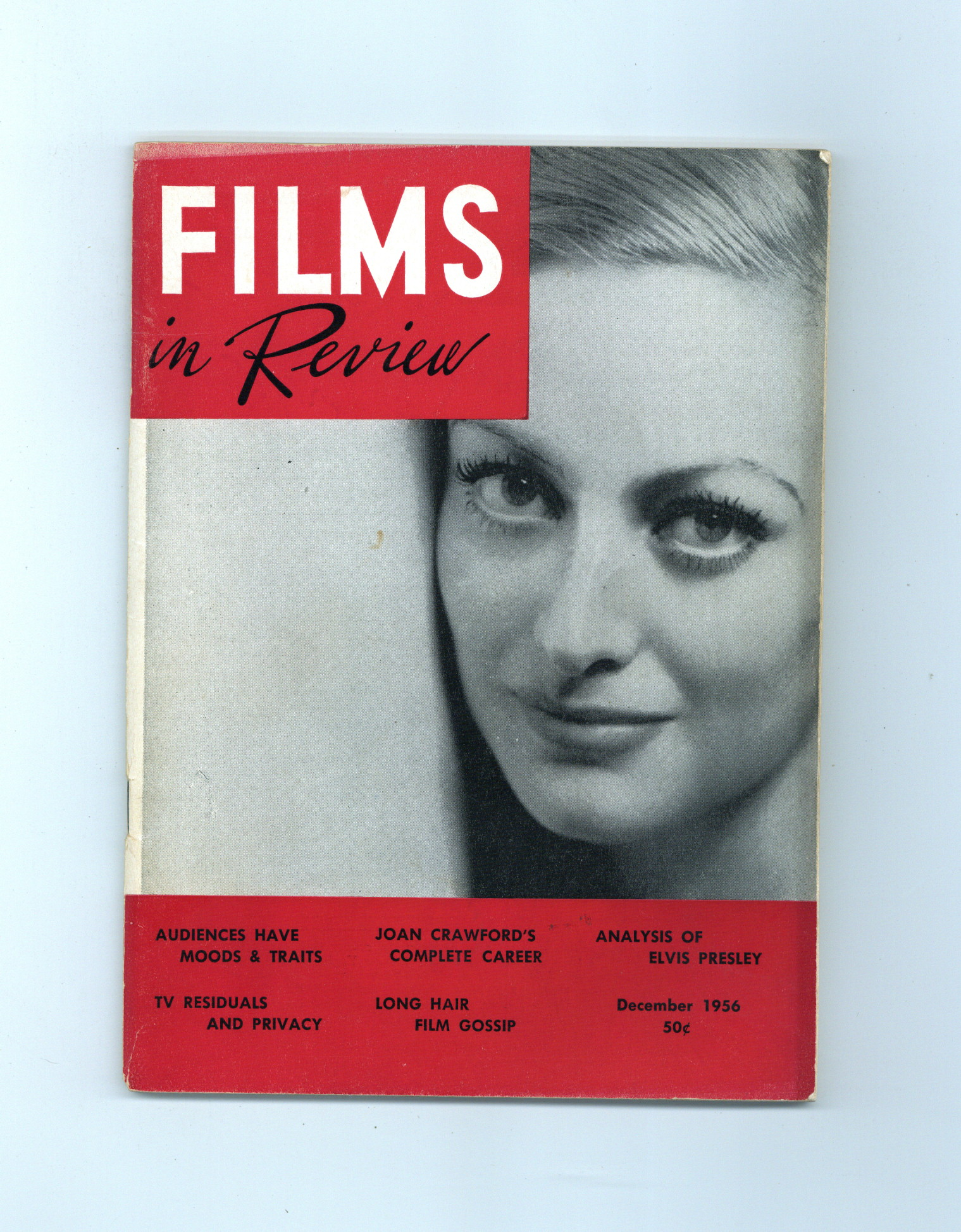 Published Dec 1956 by National Board of Review of Motion Pictures Inc..$4.00Film in Review is a publication of the National Board of Review of Motion Pictures, Inc, an independent, non-profit organization of public citizens founded in 1909 to represent the interests of the motion picture public. This National Board further assists the development of the motion picture as a source of entertainment, as education, and as art, by providing media for the expression of the public's opinion about films and their cultural and social effects. 5 1/2-in. x 7 1/2-in., 68 pages, B&W. Cover price $0.50.