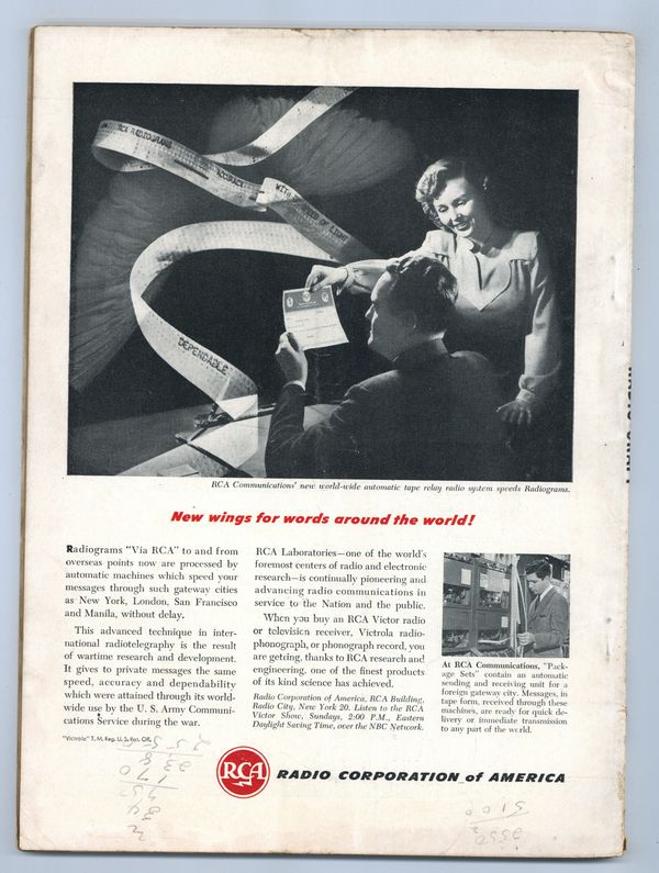 Published Oct 1947 by Radcraft Publications.$6.00- Back cover detached 20%. Water damage: Slight. Staple rust: Slight.