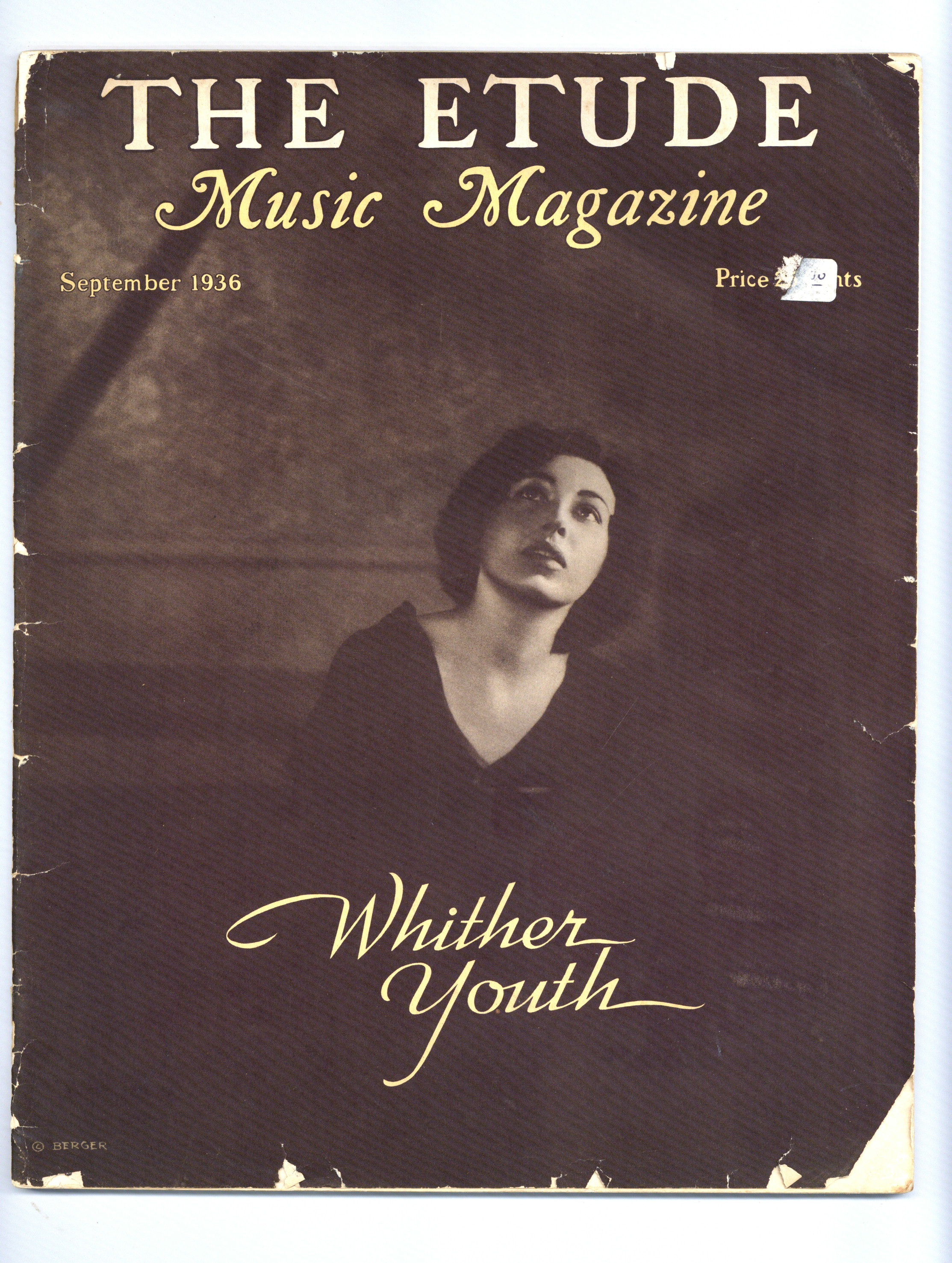Monthly magazine aimed at all musicians, from the novice through the serious student to the professional, The Etude printed articles on popular subjects and more scholarly musical subjects (including history, literature, gossip, and politics). 10.5" x 13.25", 70 pages, B&W Cover price $0.25.