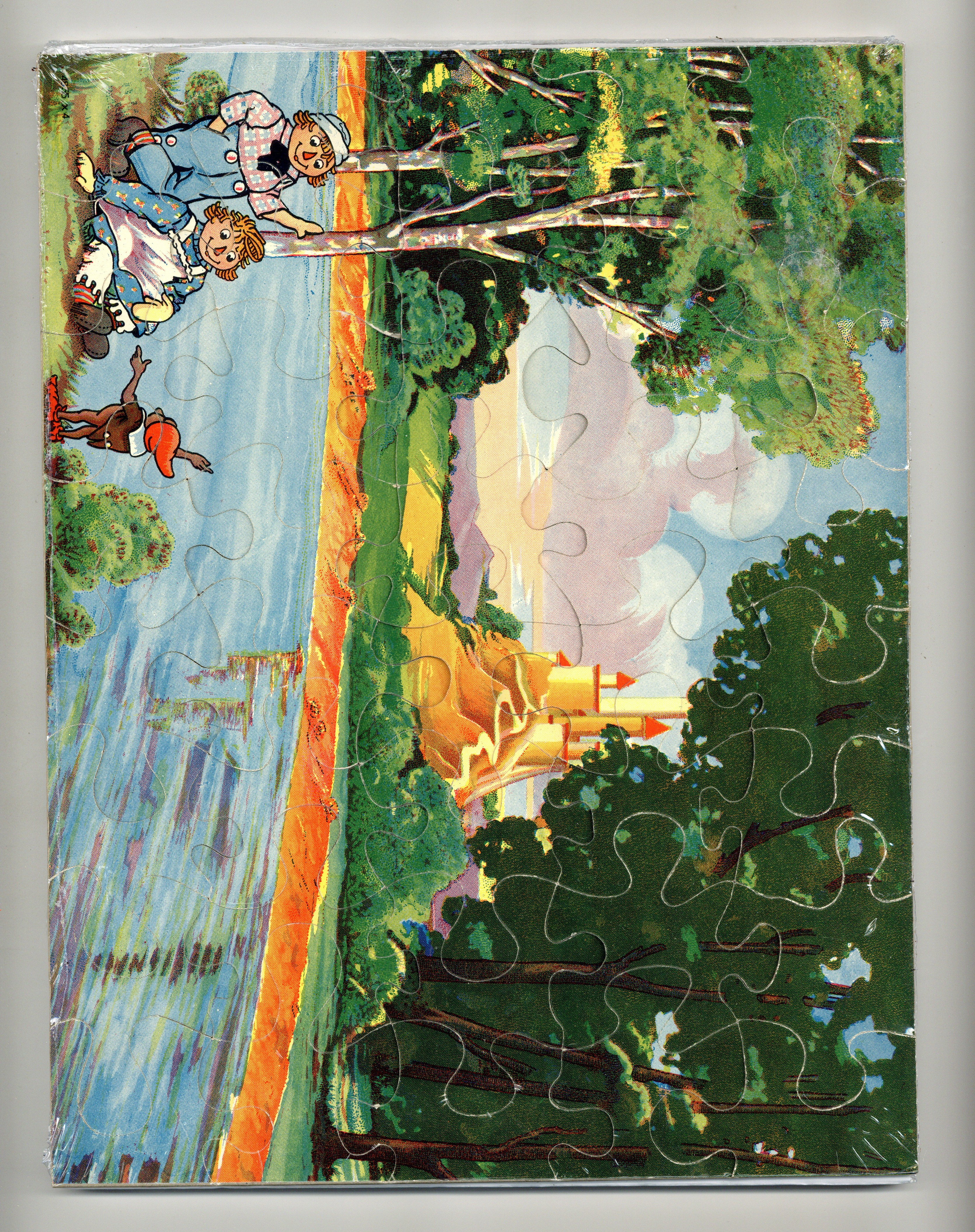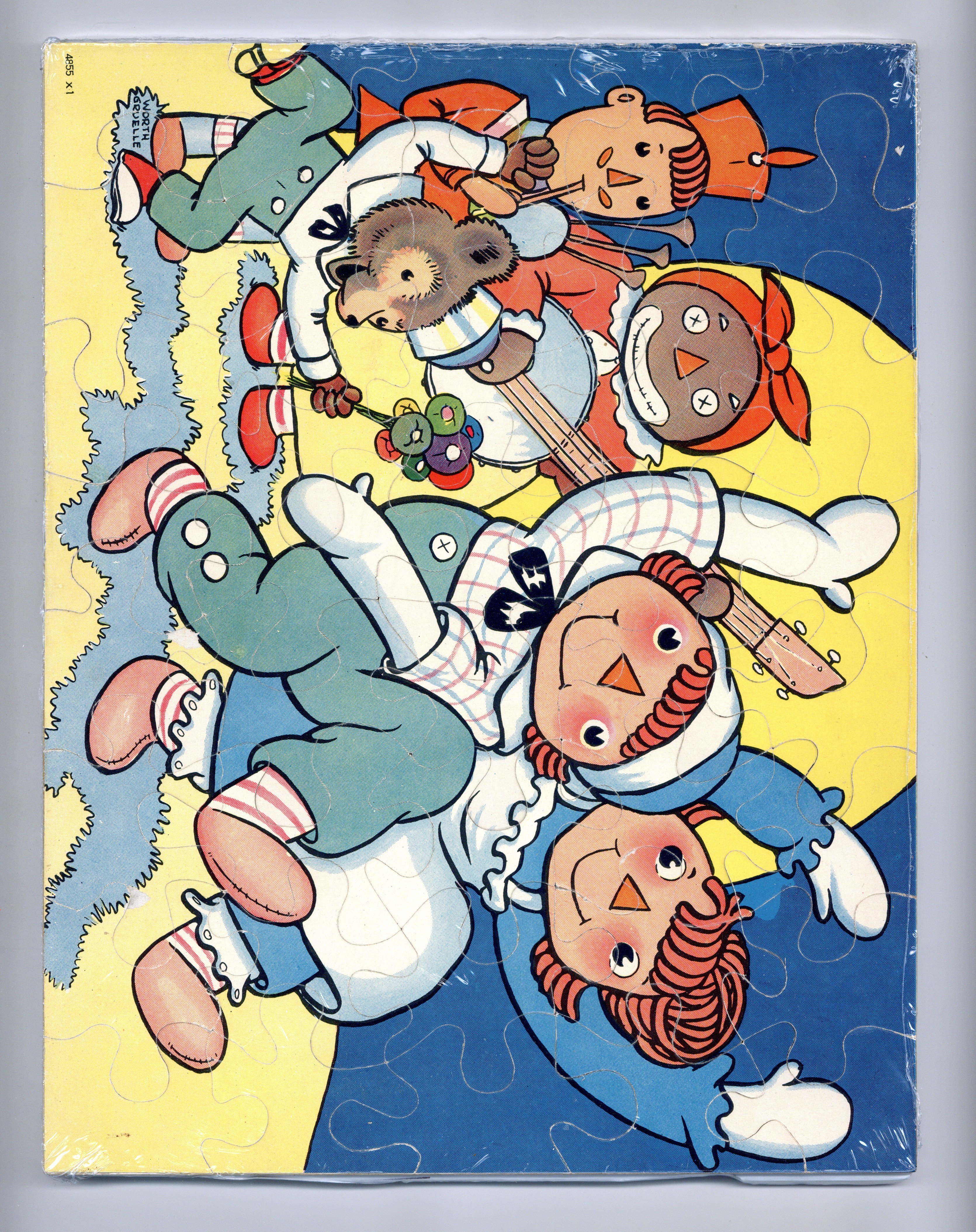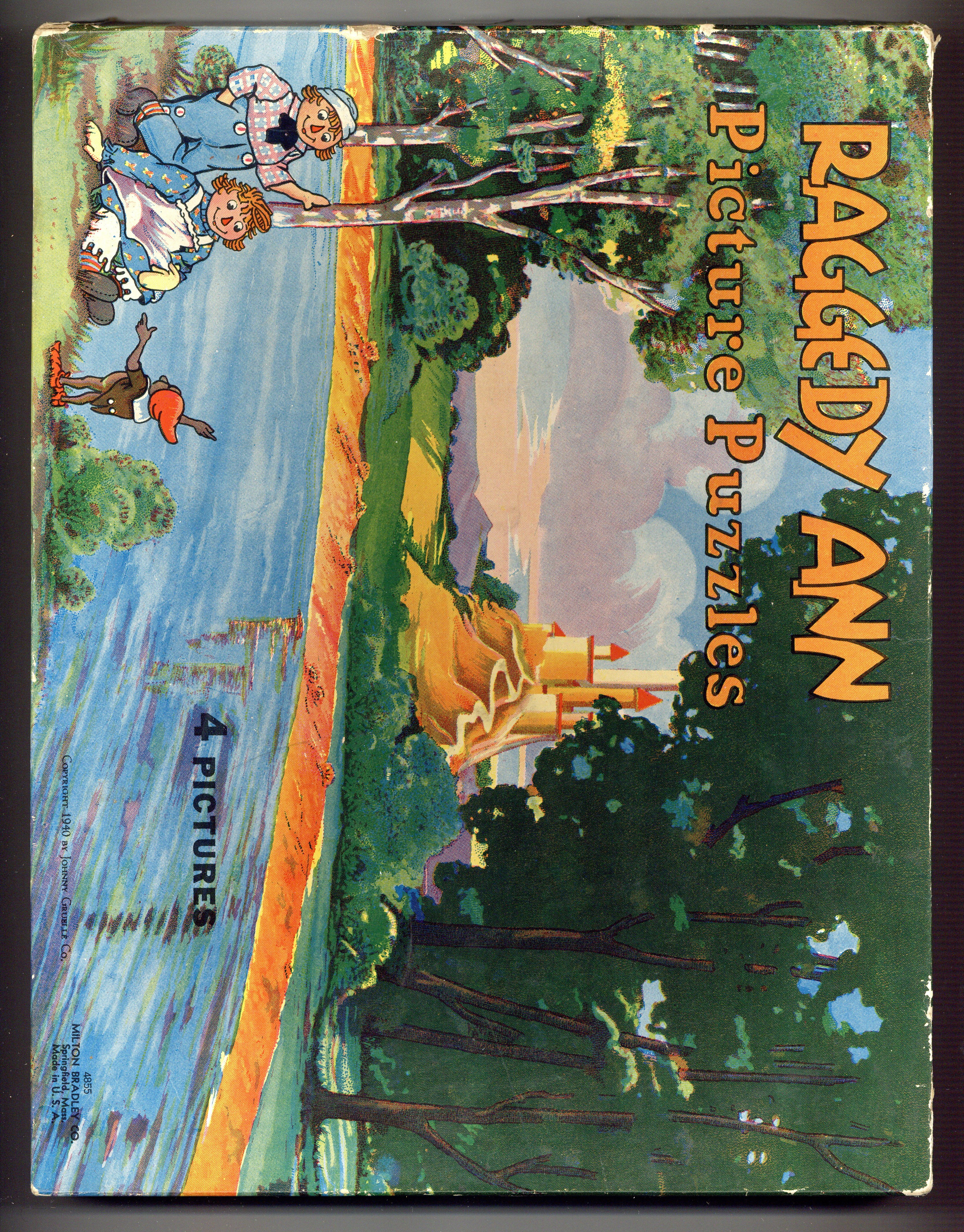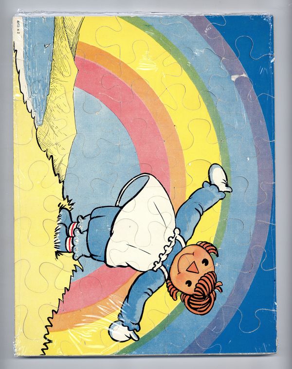 Published 1940 by Milton Bradley.$135.00Complete set of four Raggedy Ann and Andy jigsaw puzzles with original illustrated box - 1940. Illustrated by Johnny Gruelle. Box measures 13.5" x 10.5", each puzzle measures 13" x 10", full color.